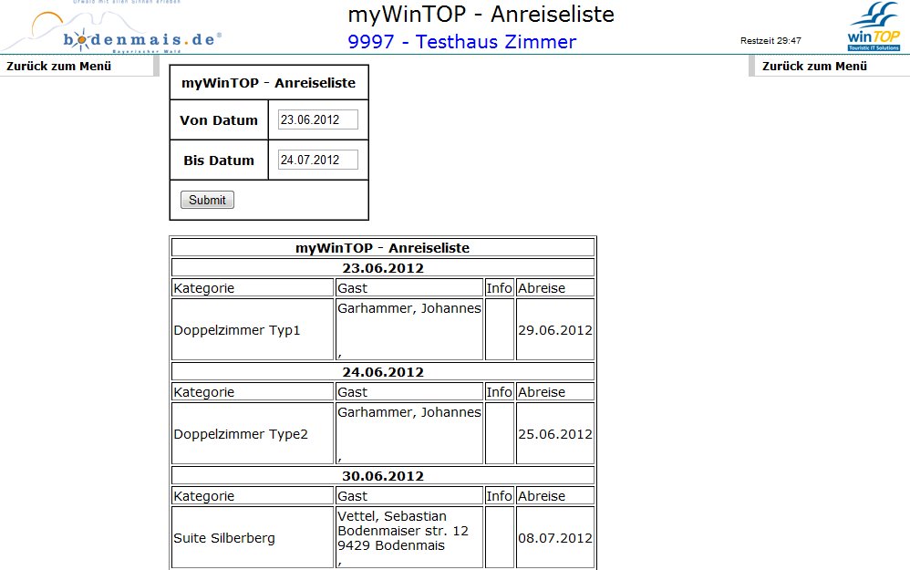 Hier können Sie sich die Buchungen in Form einer Anreiseliste anzeigen lassen.