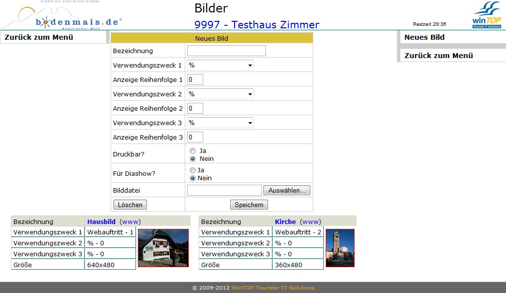 Bilder können jederzeit von Ihnen selbständig gelöscht oder eingestellt werden. Die Anzahl der Bilder ist auf zehn pro Unterkunft begrenzt.